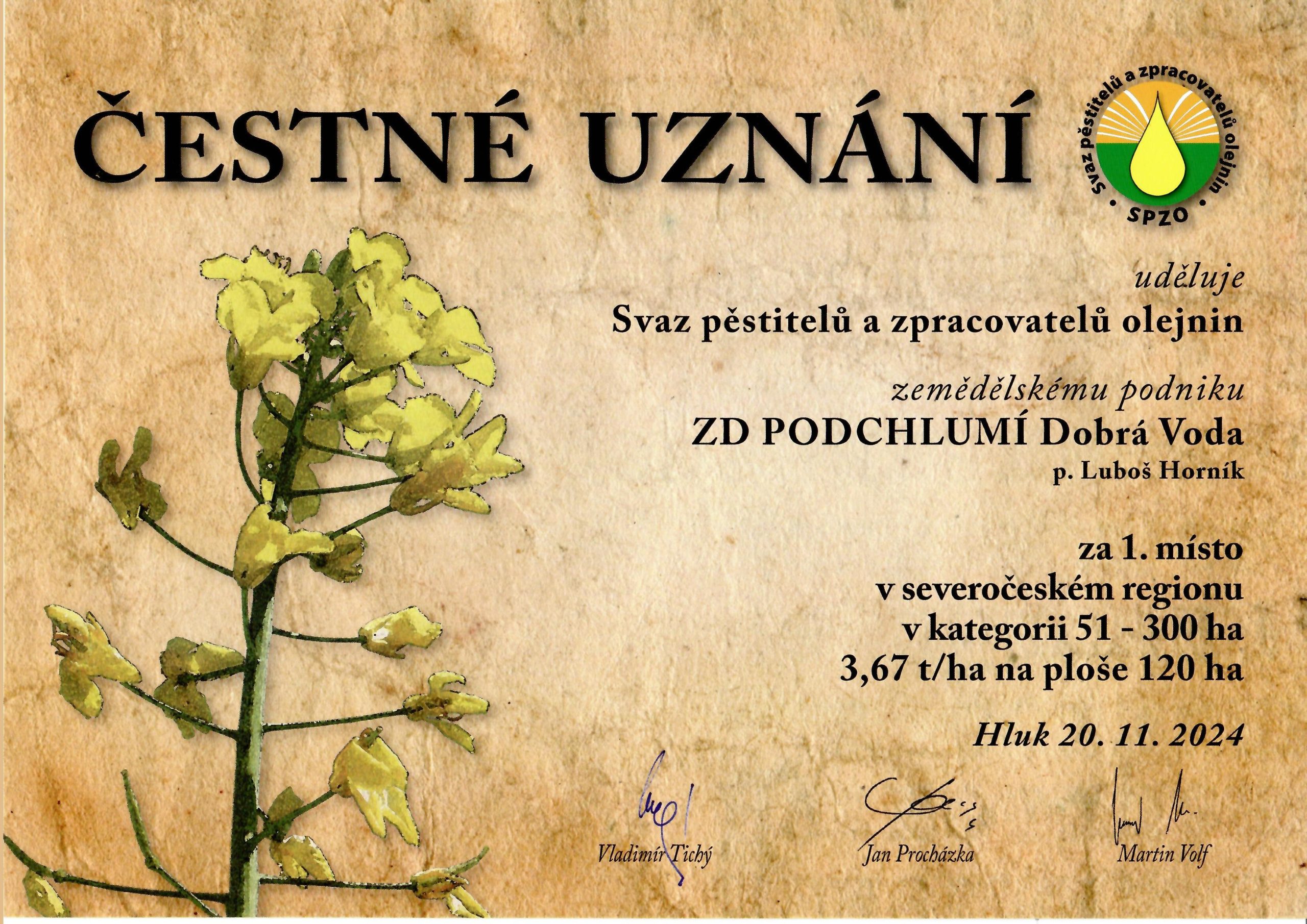Čestné uznání řepka 2024